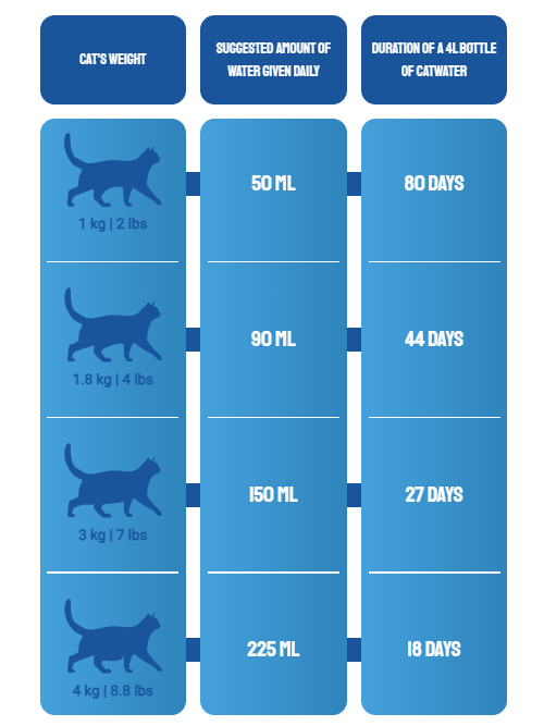 • CATWATER is perfectly balanced with a pH level between 6.2 and 6.4 to meet the specific need of cats