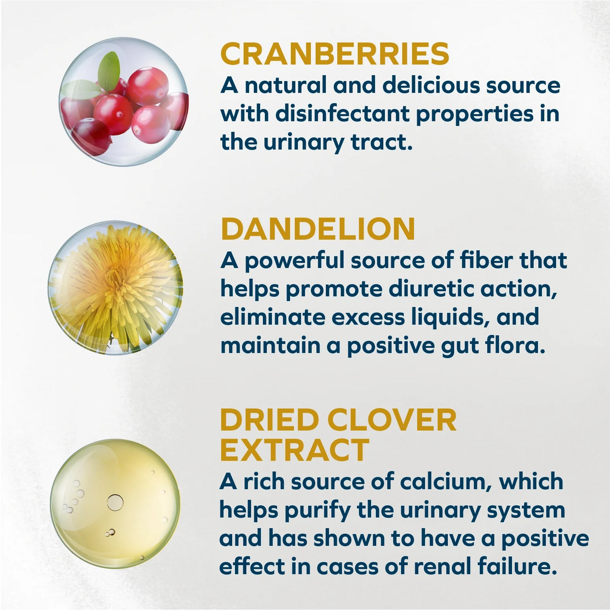 • Cranberries, dried dandelion, and dried clover are added for kidney support