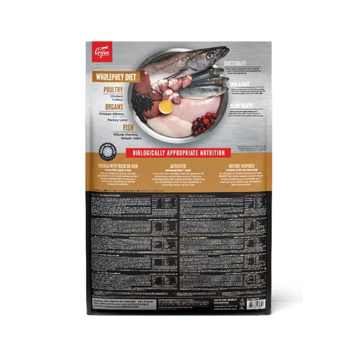 Help your cat thrive with the power of protein-rich recipes that provide peak nourishment. As obligate carnivores, modern cats are built like their ancestors and thrive on a Biologically Appropriate diet rich in protein and fat sourced from a variety of animal ingredients. ORIJEN® Original Cat diet is made with fresh or raw1 free-run2 chicken and turkey and wild-caught fish. Packed with WholePrey animal ingredients like poultry, fish, organs and bone, ORIJEN Original Cat diet is made with the most nutrient-dense, succulent parts of the prey to deliver the nutrition cats need. With 85%3 quality animal ingredients and a freeze-dried liver coating, this diet is beyond comparison.