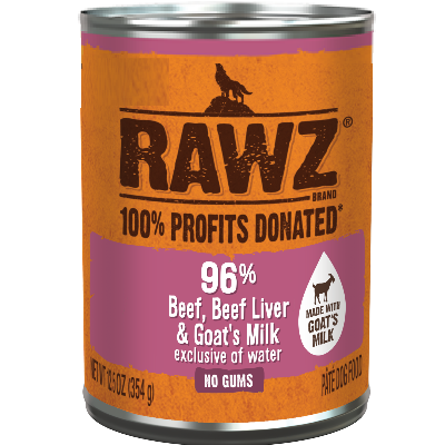 Rawz Beef, Beef Liver, and Goat’s Milk Canned Dog Food is nutritionally complete and packaged without BPA in the can lining. This wet food delivers biotin for skin and coat support and provides hydration through its naturally rich broth. Available in a case of 12 X 12.5 oz cans and ships Canada-wide.