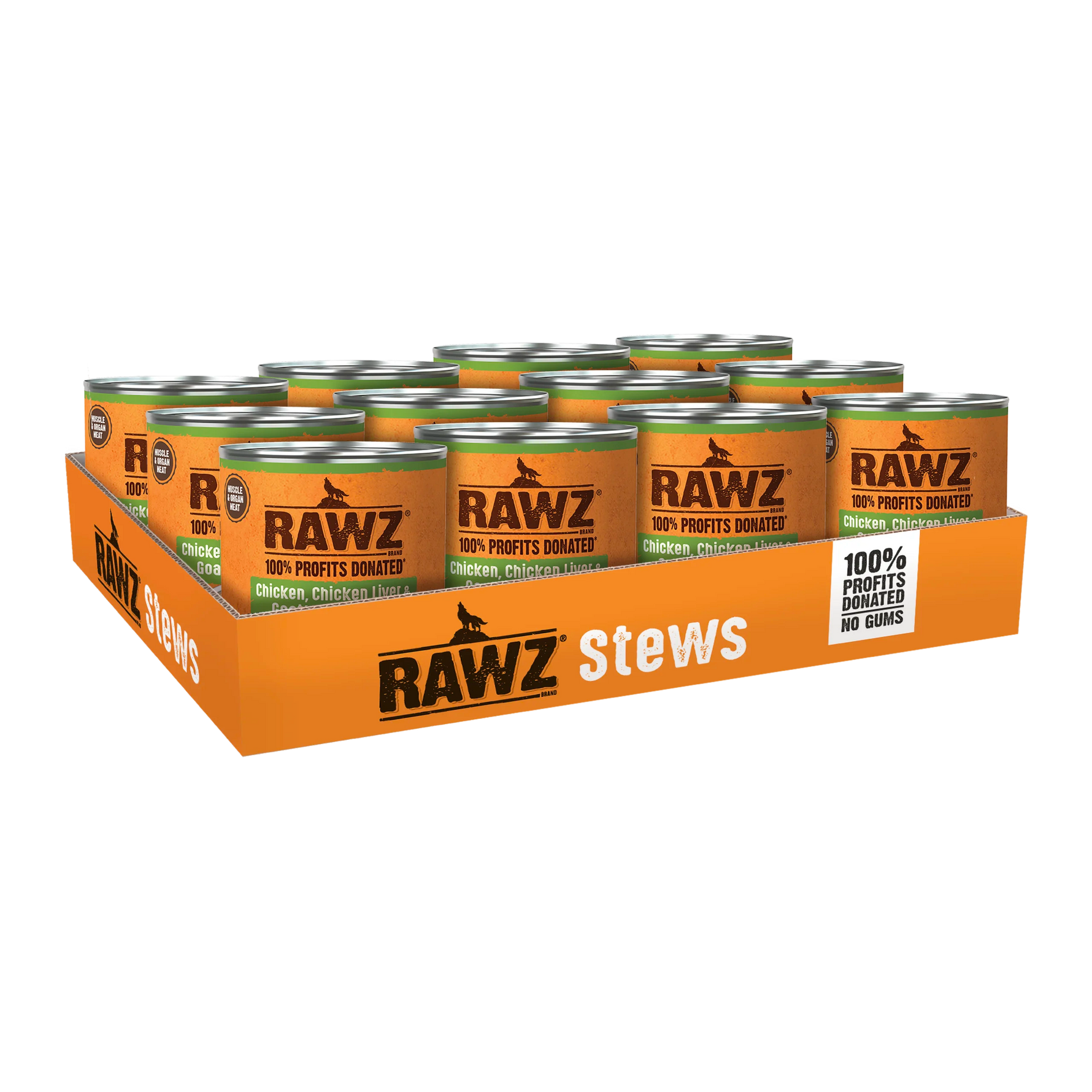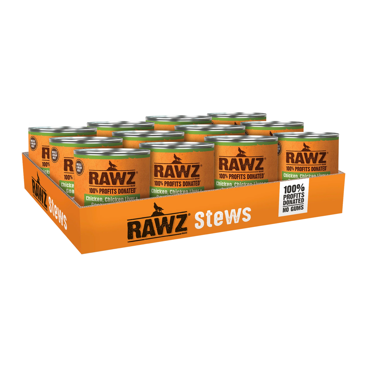 CRUDE PROTEIN MIN:11.00% |CRUDE FAT MIN:2.00%CRUDE FIBER MAX:1.50% |MOISTURE MAX:82.00%760 kcal/kg,215 kcal/canRAWZ® Chicken, Chicken Liver & Goat’s Milk Stewis formulated to meet the nutritional levels established by the AAFCO Dog Food Nutrient Profiles for Maintenance.