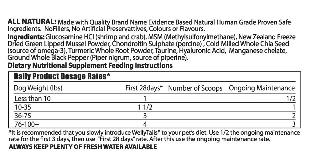 WellyTails Dog 7 Way Hip & Joint MAXIMUM is ideal for senior dogs as well as sporting athletic dogs.